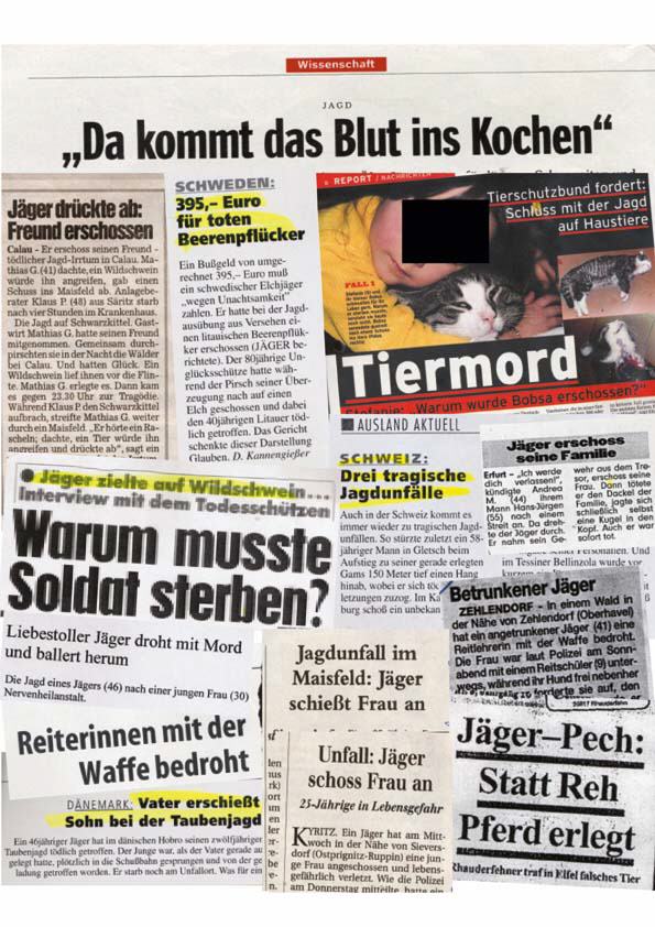 Opfer wurden sowohl Jägerkollegen und Treiber, aber auch die Ehefrau und die Kinder von Jägern, Spaziergänger, Mountainbiker, Bärlauchsammler oder spielende Kinder.
