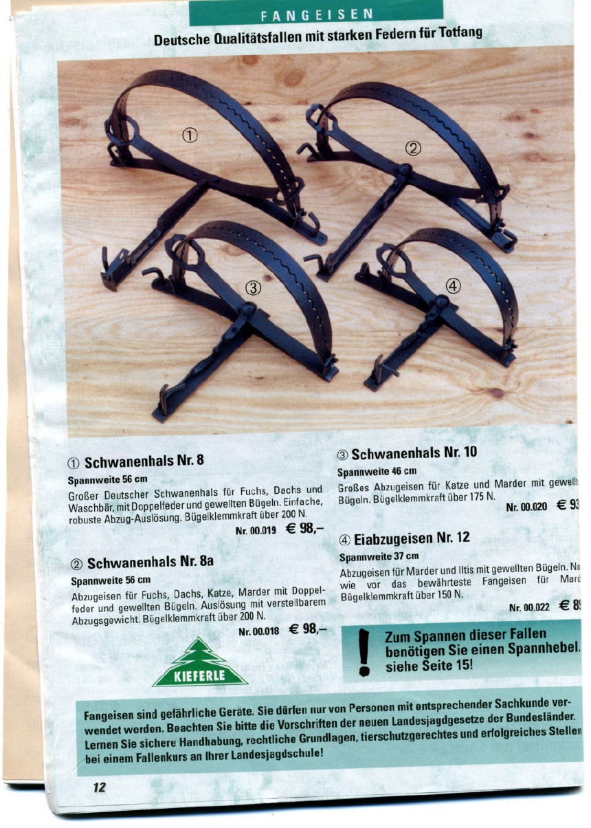 In dem Lehrbuch "Fallenjagd und Fallenfang" wird die Verwendung von Totschlagfallen zur "Bekämpfung der Katzenplage" empfohlen - es wird betont, daß der Verfasser "pro Jahr an die 25 Katzen" schoß, jedoch "jährlich viel mehr in Fallen fing". Andere Jäger gehen in ihren Forderungen sogar so weit, daß "die Katzen mit zwei oder drei Jahren ablieferungspflichtig zur humanen Tötung werden" sollen - mit der Begründung, daß die Katze "im ersten Jahr am Hause (jagt), im zweiten ums Haus und im dritten im Feld" (Behnke, Jagd und Fang des Raubwildes). Abgesehen von der naiv-pauschalen Beschreibung des Jagdverhaltens von Katzen, gibt es keinerlei wissenschaftliche Untersuchungen zum Thema "Wildernde Katzen", die eine "ökologische" Rechtfertigung des Tötens von Katzen auch nur ansatzweise nahelegen würden.